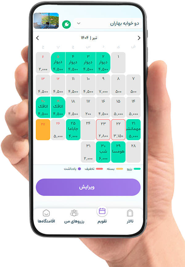 ✅ ثبت نرخ اجاره هر روز در تقویم ✅ ثبت تخفیف ✅ اشتراکگذاری تقویم اقامتگاه با همکاران